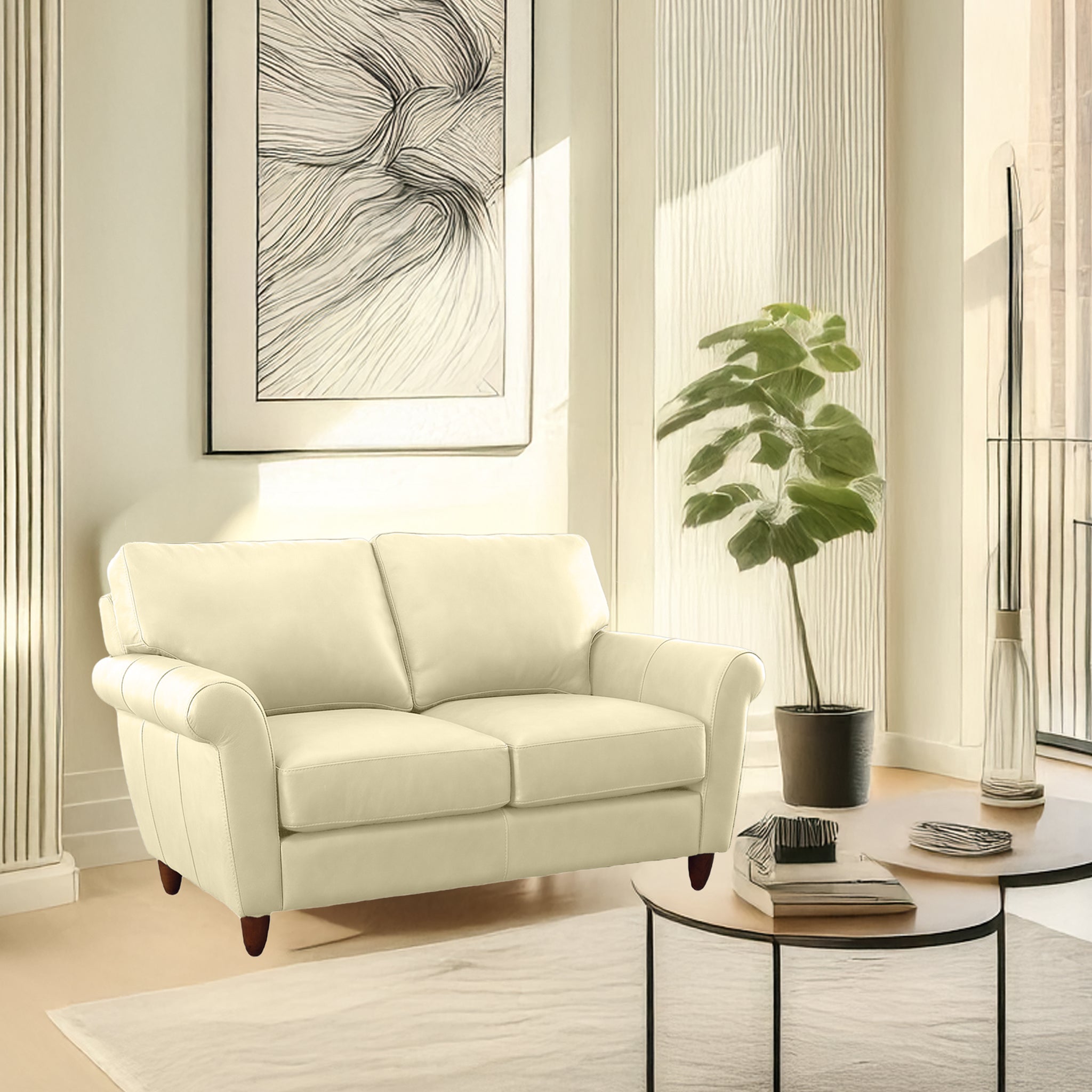 This beautifully crafted leather loveseat combines timeless sophistication with exceptional comfort. Upholstered in genuine leather that develops a rich character over time, it offers both durability and elegance. Thoughtfully designed with classic rolled arms, supportive cushions, and a sturdy frame, it provides lasting relaxation for everyday living. Its clean, versatile silhouette complements a wide range of interiors—from living rooms and condos to professional office spaces—making it a refined centerpiece that enhances any setting.