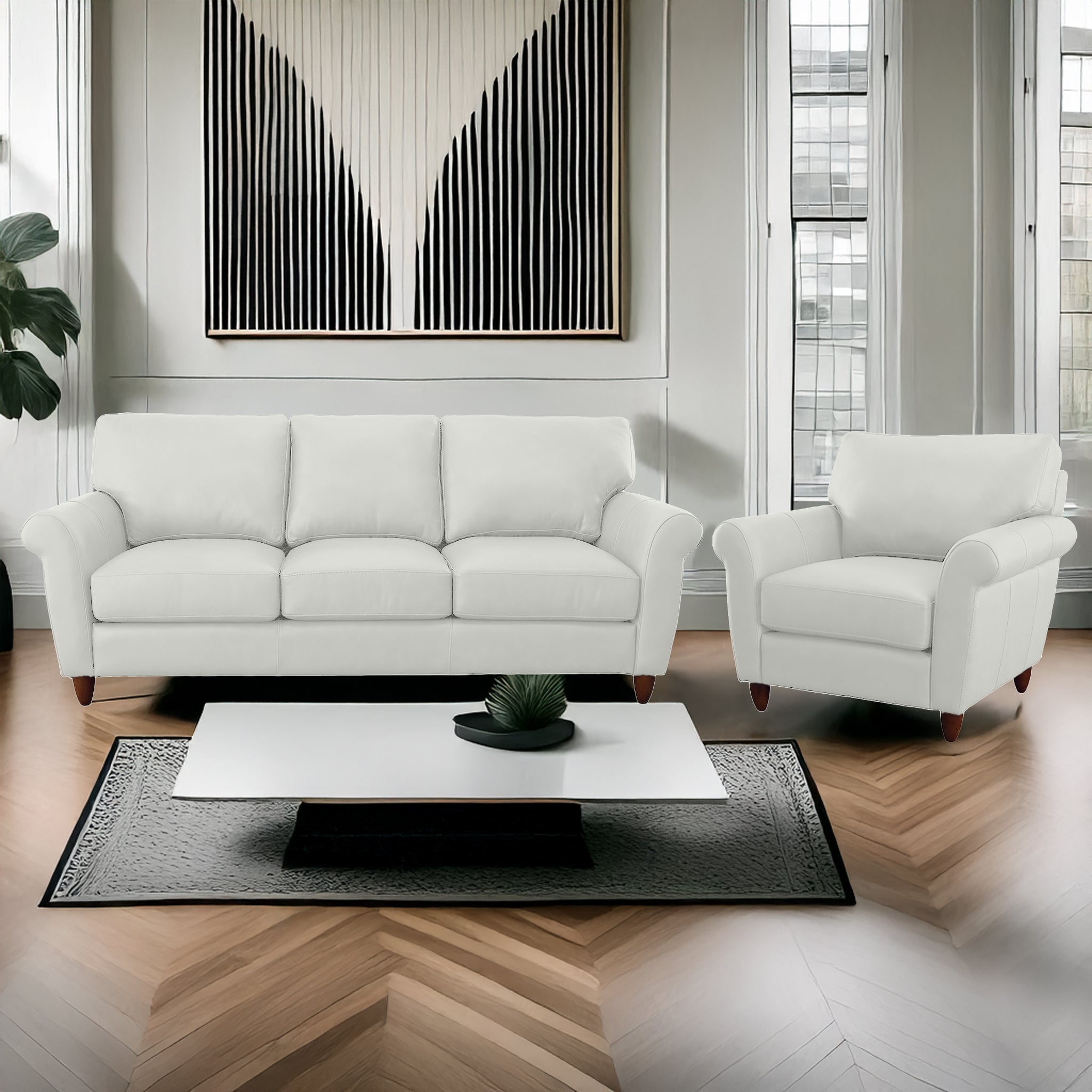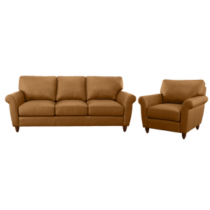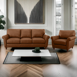 This beautifully crafted leather sofa and chair set combines timeless sophistication with exceptional comfort. Upholstered in genuine leather that develops a rich character over time, it offers both durability and elegance. Thoughtfully designed with classic rolled arms, supportive cushions, and a sturdy frame, it provides lasting relaxation for everyday living. Its clean, versatile silhouette complements a wide range of interiors—from living rooms and condos to professional office spaces—making it a refined centerpiece that enhances any setting.