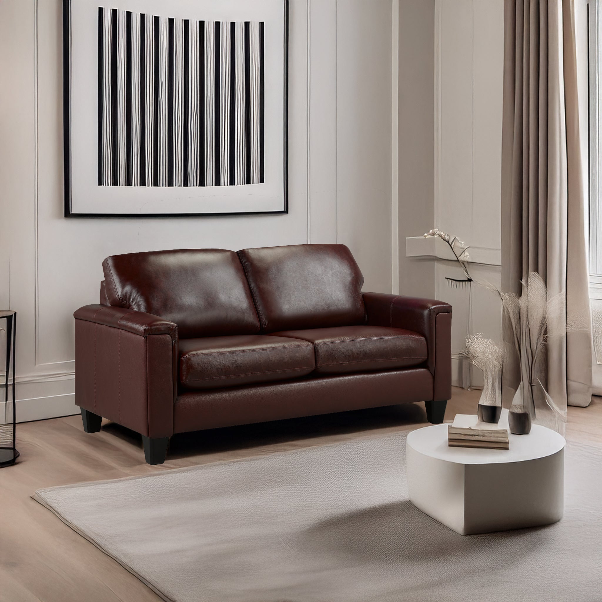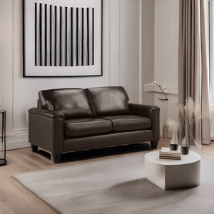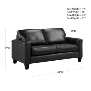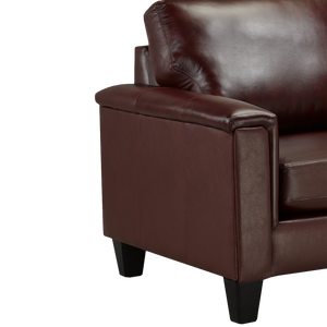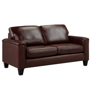 Experience comfort at its finest with the Benson Leather Loveseat, crafted to combine timeless elegance with everyday relaxation. This stunning piece features high-quality top grain leather on all touch surfaces, matched with a soft and durable PU exterior, ensuring both luxury and long-lasting durability. Designed for comfort, the plush, thick seat cushions are loose for easy adjustment, while the back cushions are securely sewn in place to maintain a consistently neat look. Generously padded arms and a sleek, refined silhouette complete the design, making the Benson a true statement piece. Available in a variety of rich color options.