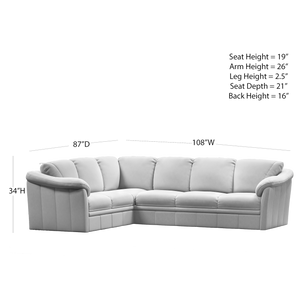 • Overall product dimensions Sectional: 108 / 87"W x 36"D x 34"H