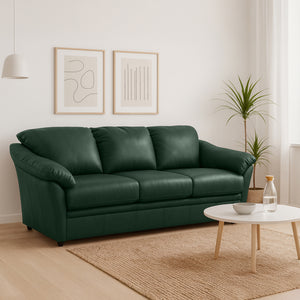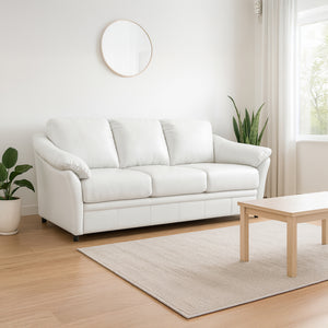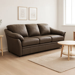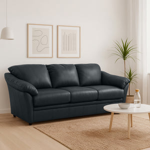 This well-designed leather sofa blends sophistication and comfort with genuine leather upholstery that ages beautifully over time. Featuring plush pillow-top arms, supportive cushions, and a durable frame, it offers lasting relaxation and style. Its clean, classic silhouette fits seamlessly in any space—whether a living room, condo, or office—making it a timeless centerpiece that elevates any décor.