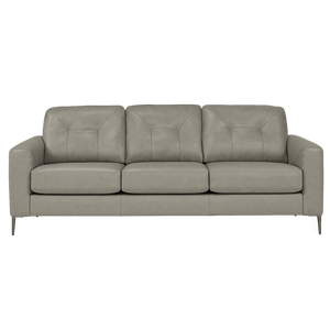 Elevate your home with the Solera Leather Sofa, a perfect balance of modern design, premium craftsmanship, and everyday comfort. Upholstered in top-grain genuine leather on all touch surfaces and reinforced with durable PU on the sides and back, this luxury leather sofa offers a timeless look built to last. The plush, high-resilience cushions deliver long-lasting support, while the removable seat cushions let you adjust for the ideal comfort level. Its attached back cushions maintain a sleek, tailored silhouette—keeping your space effortlessly polished. Designed with padded arms for added relaxation and a contemporary profile that complements any décor style, the Solera Sofa is available in a soft ivory leather color for a warm, inviting look and refined sophistication. Whether you’re entertaining guests, enjoying movie nights, or creating a cozy reading nook, the Solera Leather Sofa transforms your living room into a haven of style, comfort, and elegance.